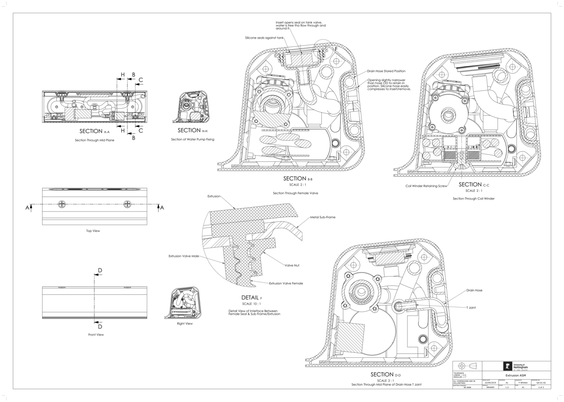 A plastic extrusion encases the sub-assembly and injection moulded components complete the rest of the frame.